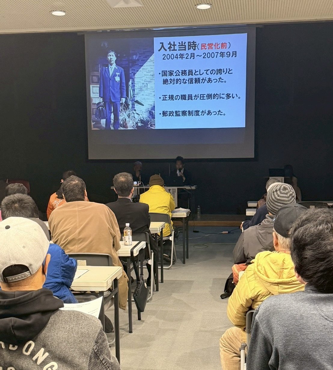 1月24日、郵政を再公営化すべし!稲村公望さんと菅谷竜の対談集会を行いました。